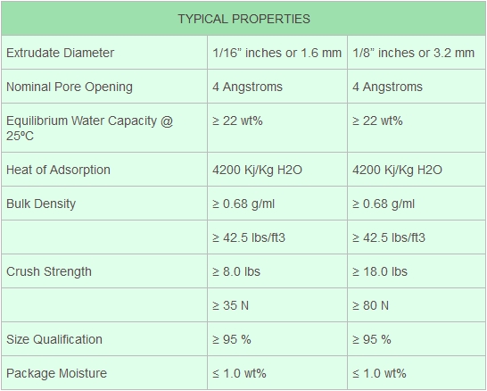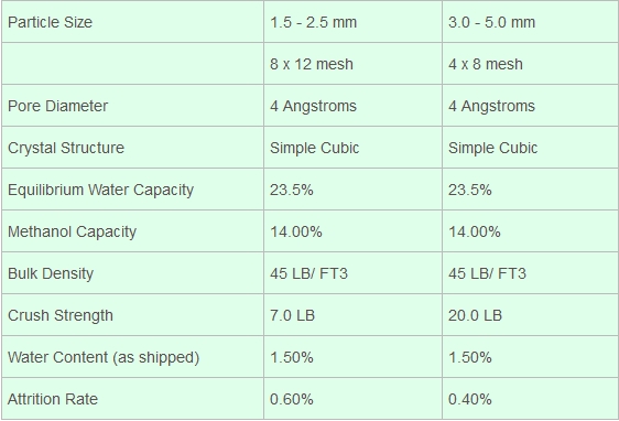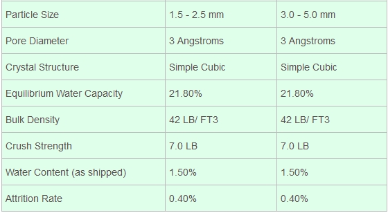 Applications include C2 feed dehydration, NGL feedstocks, ethylene, and propylene. 3A molecular sieve is especially useful in drying ethanol, natural gases with high hydrocarbon content, and the cryogenic production of LPG. 3A bead products are used in the dehydration of FCC off gas, and mixed butane/butylene feedstocks.